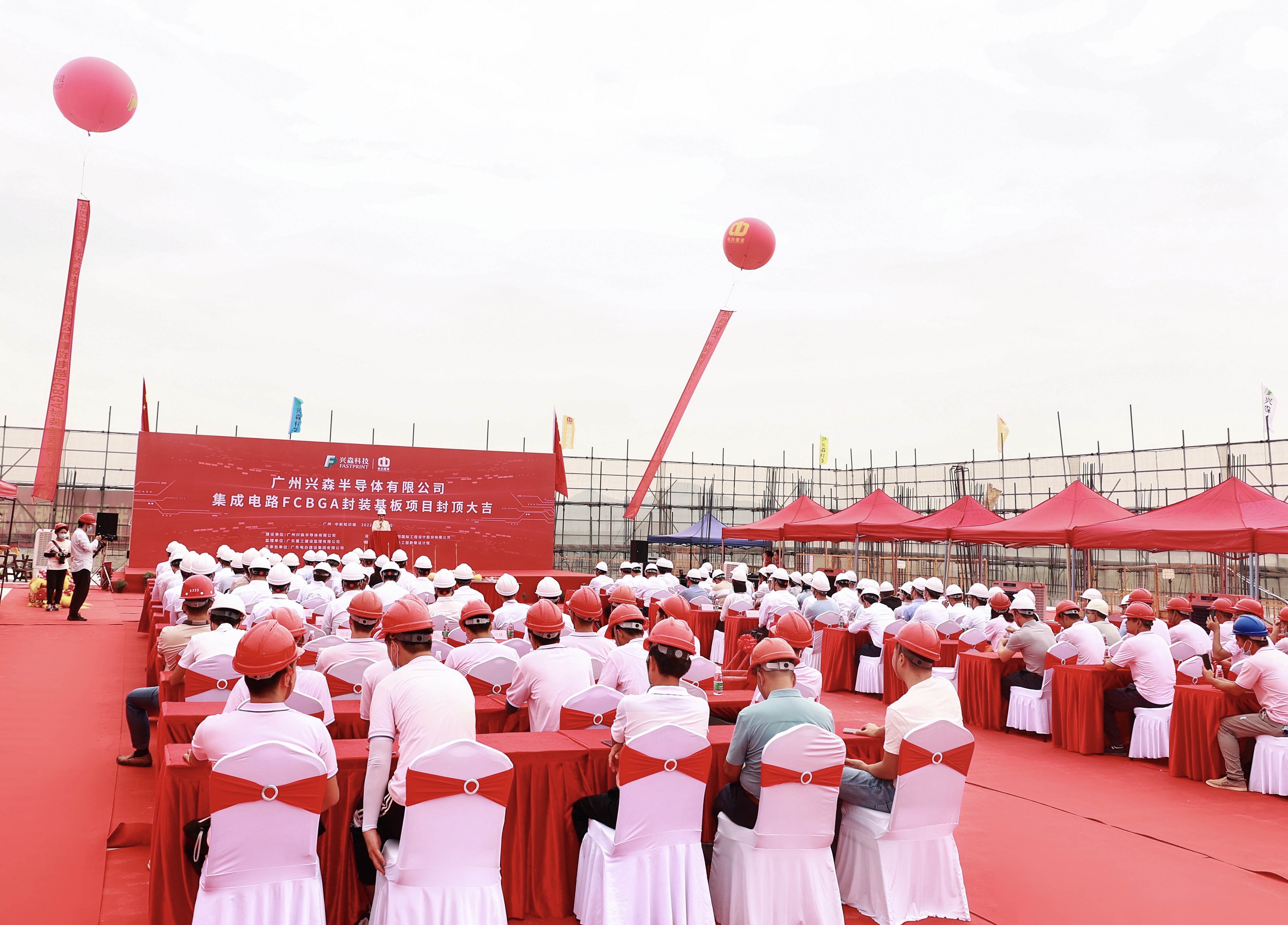 9月24日,广州兴森半导体有限公司集成电路FCBGA封装基板项目顺利完成一期厂房封顶。兴森集团董事长兼总经理邱醒亚先生、各参建单位代表以及关键部门的领导同事出席了封顶仪式,共同见证项目建设阶段里程碑式的重要节点。
